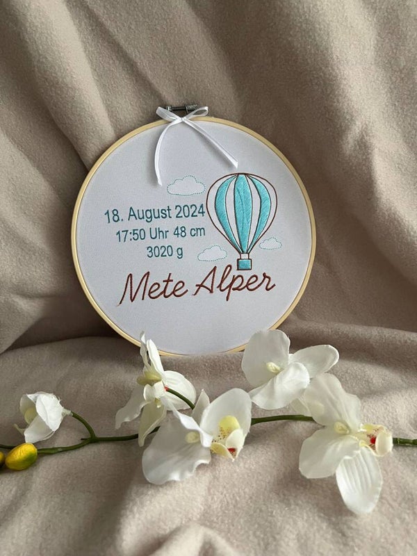 Stickrahmen mit Geburtsdaten 25cm Ø